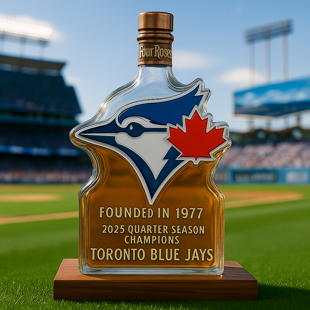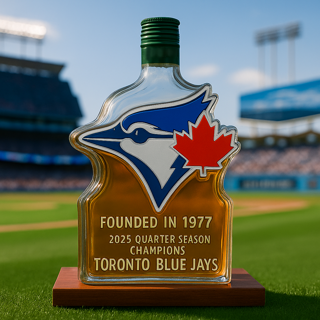 🎁This unique bottle design features the iconic Blue Jays logo, coupled with the team's founding year, 1977, and a special recognition of their championship status.🥃