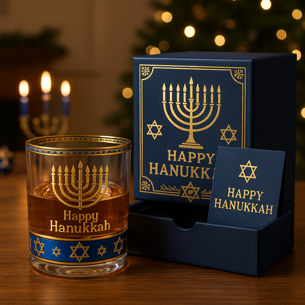 🎁This premium glass, featuring gold accents and a beautifully designed menorah and Star of David, brings a sophisticated spirit to your holiday gatherings.🕯️